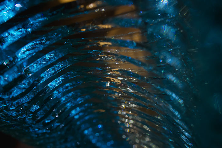 The main attribute of this layered glass monumental sculpture is the optical illusion of plasticity and visual lightness created from the solid and heavy material- glass. This is achieved through a combination of several treatment technologies. The sculpture is composed of three intertwined elements. The rim of the glass is imparted with a rippling effect, while the point of contact of the three elements has been left clear and transparent, thus visually blurring it and leading one's attention to the rhythm of the twining.